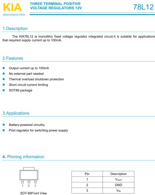三端穩(wěn)壓管-三端穩(wěn)壓管7812中文資料及穩(wěn)壓電源電路圖 引腳圖-KIA MOS管