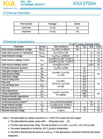 MOS管 3706 50A/60V 新產品上線 歡迎咨詢-規格書詳情 免費送樣-KIA MOS管