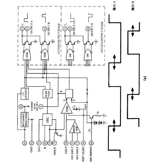 如上所述 ,柵極驅(qū)動(dòng)電路必須能輸出電流 ,即成為 “ 源”。同時(shí),為了提供柵極反向電壓,MOS驅(qū)動(dòng)電路必須能從柵極抽取電流 ,即成為 “ 匯”。大部分早期的 PWM 芯片 ( SG1524 系列) 的驅(qū)動(dòng)電路,不能同時(shí)抽取和輸出電流。即不 能同時(shí)成為漏極導(dǎo)通和關(guān)斷的 “ 源” 和 “ 匯”。圖 9.6 ( a ) 中的電路說明了這一點(diǎn)。