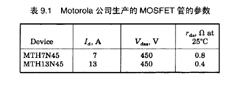 表 9.1 給出了 Motorola 公司生產的塑料封裝 、額定電壓為 450V 的 MOSFET 管的各種 數據。