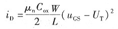 式中,UT為開啟電壓(或閾值電壓);μn為溝道電子運(yùn)動(dòng)的遷移率;Cox為巾位面積柵極電容;W為溝道寬度;疋為溝道長(zhǎng)度;W/L為MOSFET的寬長(zhǎng)比。在MOSFET集成電路設(shè)計(jì)中,寬長(zhǎng)比是一個(gè)極為重要的參數(shù)。