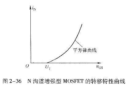 N溝道加強(qiáng)型MOSFET的轉(zhuǎn)移特性曲線如圖2-36所示。
