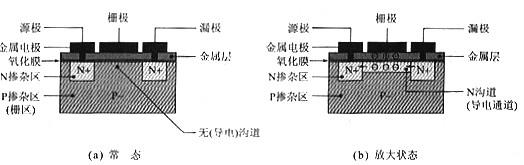 在常態(tài)下,MOSFET中并沒有導(dǎo)電通道,在有了偏置電壓時,在電場的作用下,源極(區(qū))與柵極(區(qū))之間就會形成導(dǎo)電通道,并且隨著偏置電壓的增加而加寬,導(dǎo)電能力增加直到最大(飽和導(dǎo)通)。這種MOSFET稱為增強(qiáng)型MOS管(Enhancement-Mode MOSFET),這是目前為止應(yīng)用最為廣泛的MOSFET,尤其是功率MOSFET和CMOS IC。PMOS和NMOS -般也是指增強(qiáng)型的MOSFET。