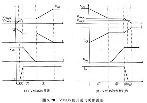 在圖5. 70(a)中,VMOS的開通被分紅了四個(gè)階段,以便于問題的說明。