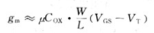 應用第1章的式(1.18),可將跨導gm表示如下: