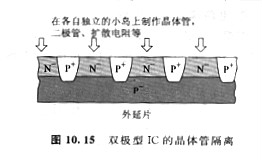 TTL等雙極器件中,如圖10. 15所示,相鄰的晶體管之間需求隔離,而且要提高電流驅(qū)動型器件的集成度,就很難抑止功率耗費和發(fā)熱現(xiàn)象。