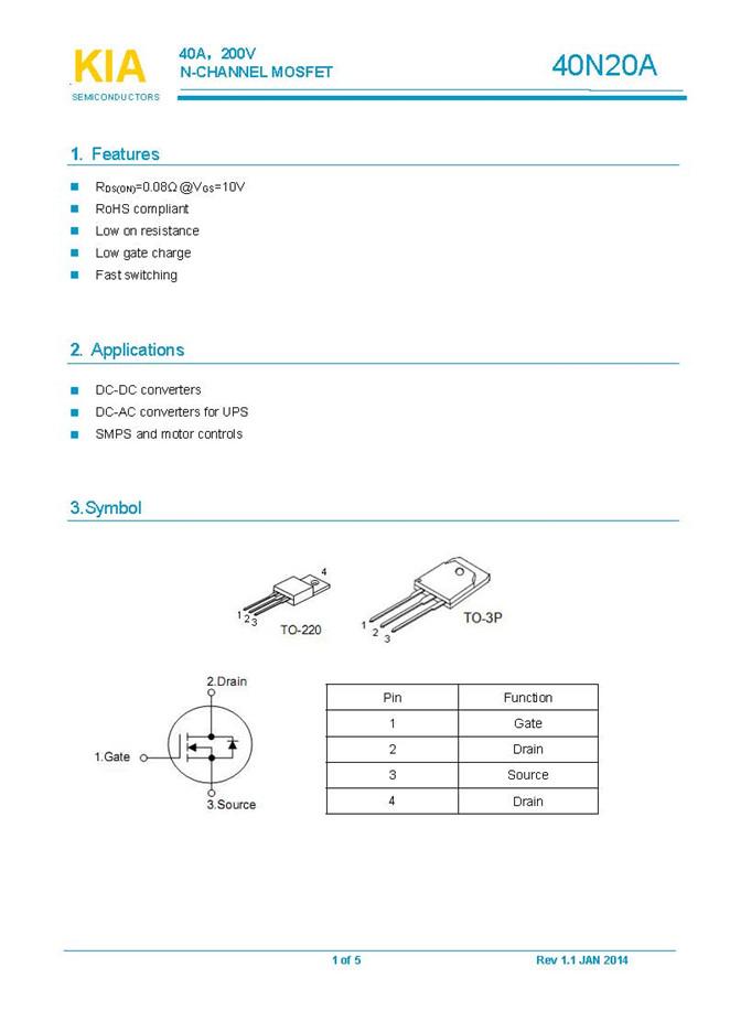 參數(shù): ID(A): 40    BVDSS(V): 200    RDS(ON): 0.1    Qg(nC): 50    Package: TO-220、TO-3P