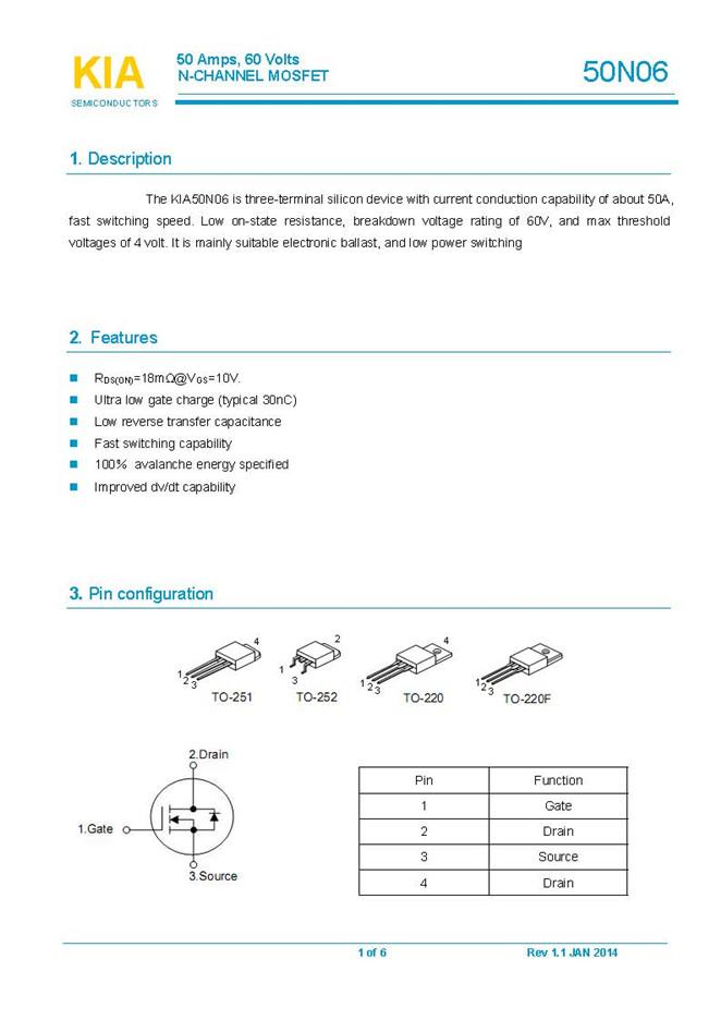 參數: ID(A): 50    BVDSS(V): 60    RDS(ON): 0.23    Qg(nC): 40    Package: TO-220、TO-220F、TO-252