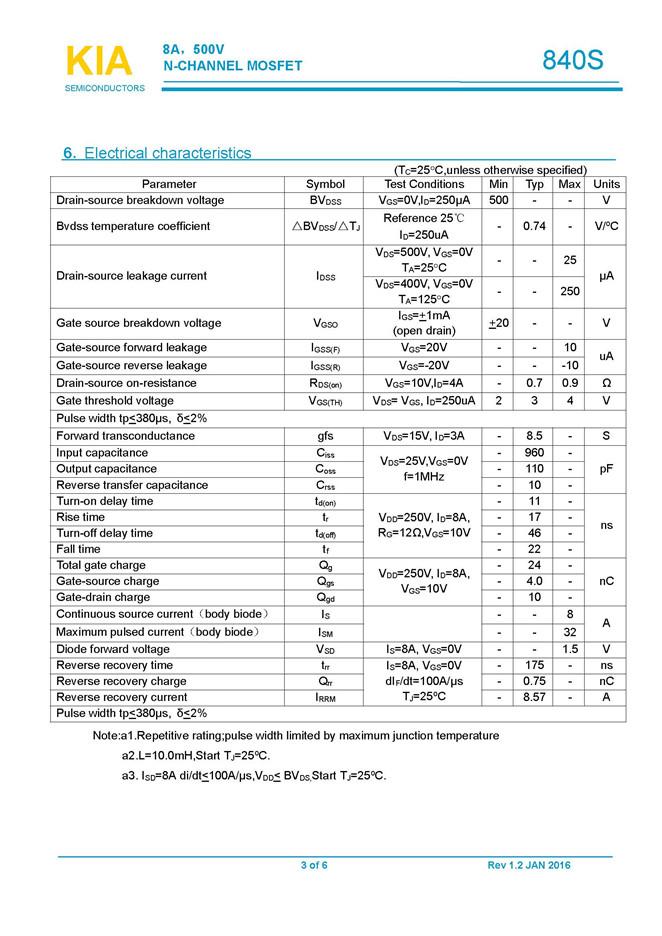 參數: ID(A): 8    BVDSS(V): 500    RDS(ON): 0.9    Qg(nC): 24    Package: TO-252、TO-263、TO-220 TO-220F