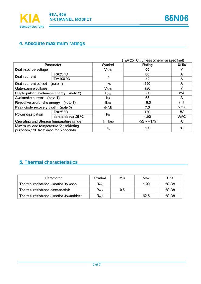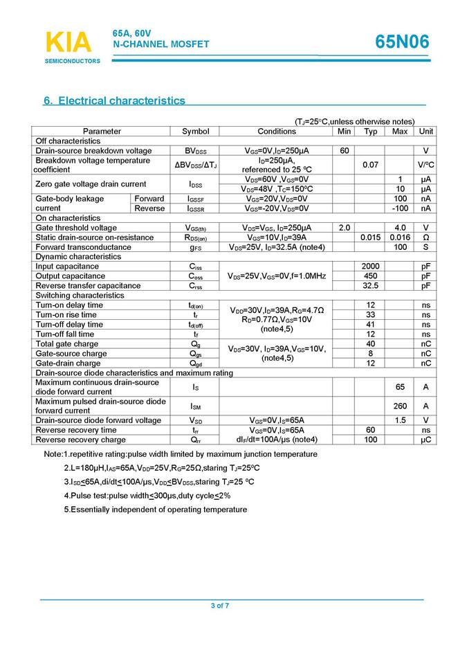 名稱: KIA65N06
