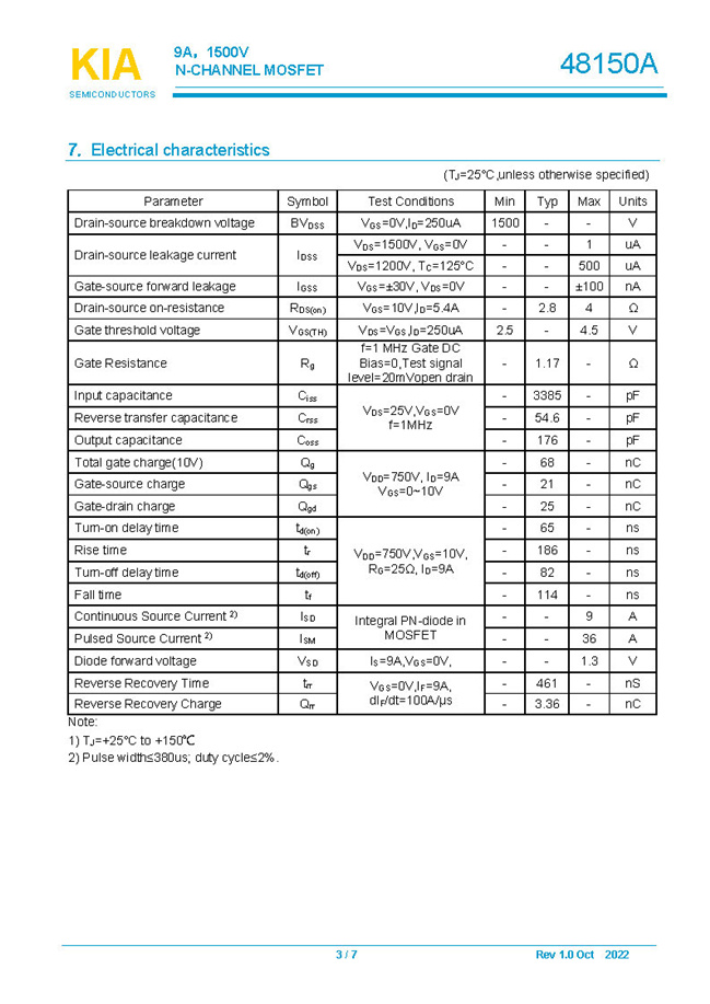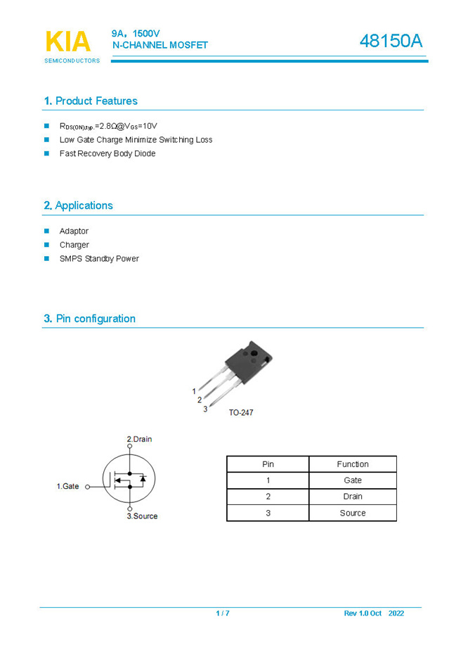 參數: ID(A): 9    BVDSS(V): 1500    RDS(ON): 2.8Ω    Qg(nC): 68    Package: TO-247