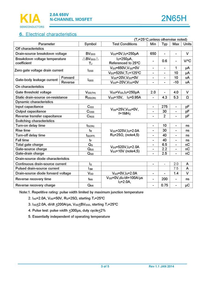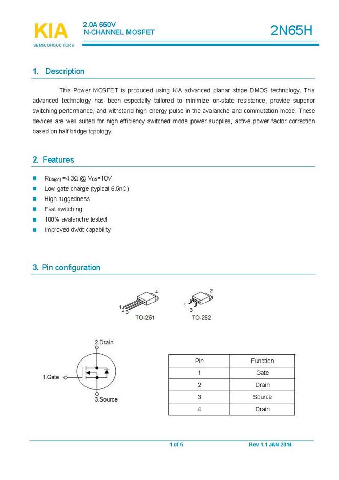 參數(shù): ID(A): 2    BVDSS(V): 650    RDS(ON): 5.3    Qg(nC): 6.5    Package: TO-251、TO-252