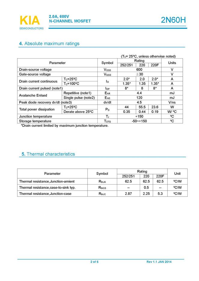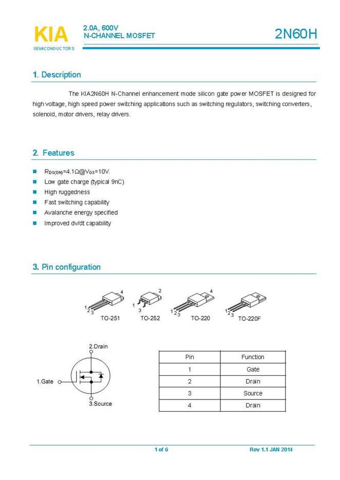 參數(shù): ID(A): 2 BVDSS(V): 600 RDS(ON): 5 Qg(nC): 9 Package: TO-251、TO-252、TO-220、TO-220F