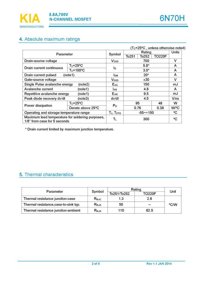 參數: ID(A): 5.8    BVDSS(V): 700    RDS(ON): 2.3    Qg(nC): 16    Package: TO-251、TO-252、TO-220F