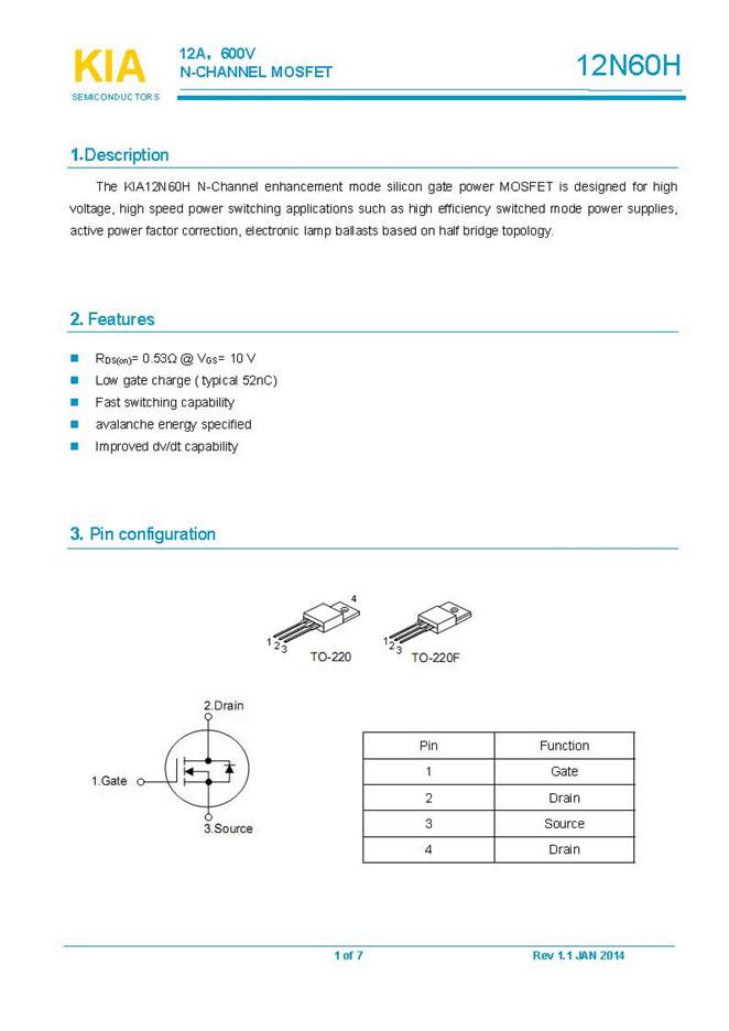 參數: ID(A): 12    BVDSS(V): 600    RDS(ON): 0.65    Qg(nC): 52    Package: TO-220、TO-220F