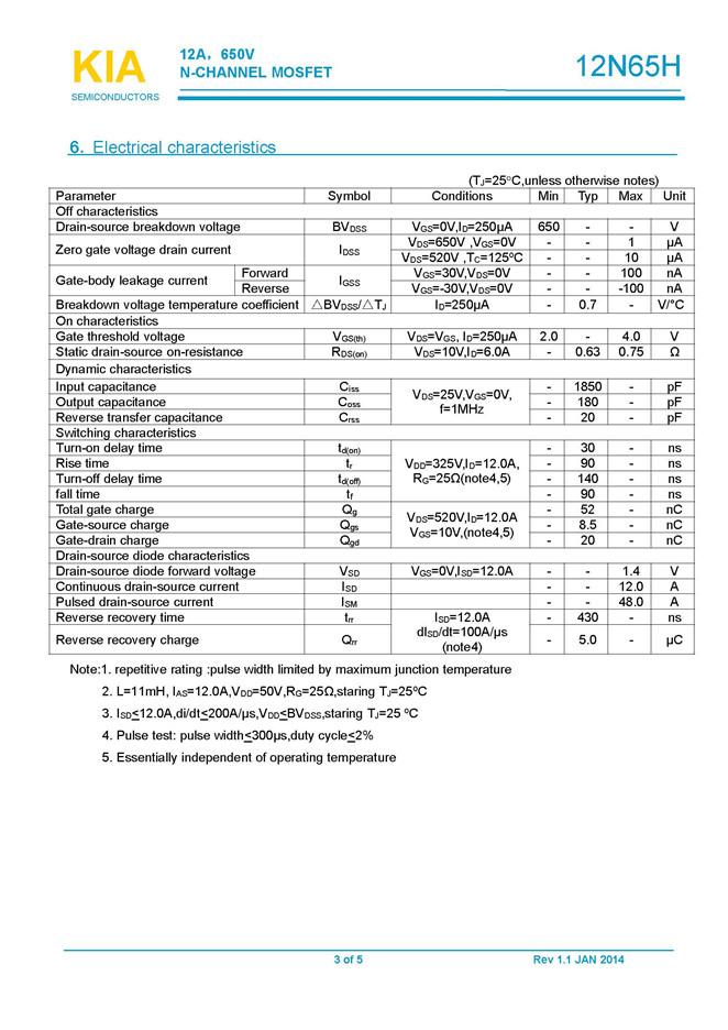 參數: ID(A): 12    BVDSS(V): 650    RDS(ON): 0.72    Qg(nC): 52    Package: TO-220F