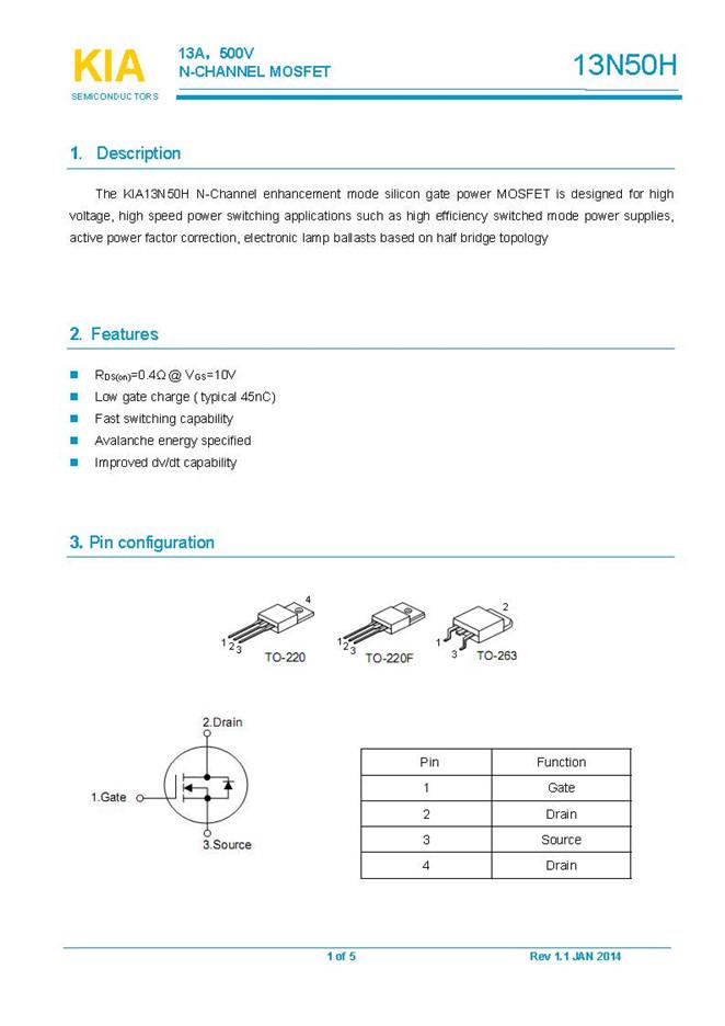 參數: ID(A): 13    BVDSS(V): 500    RDS(ON): 0.48    Qg(nC): 45    Package: TO-263、TO-220、TO-220F