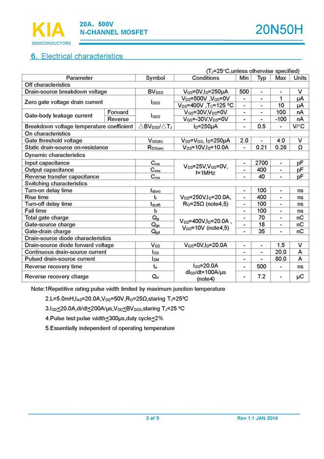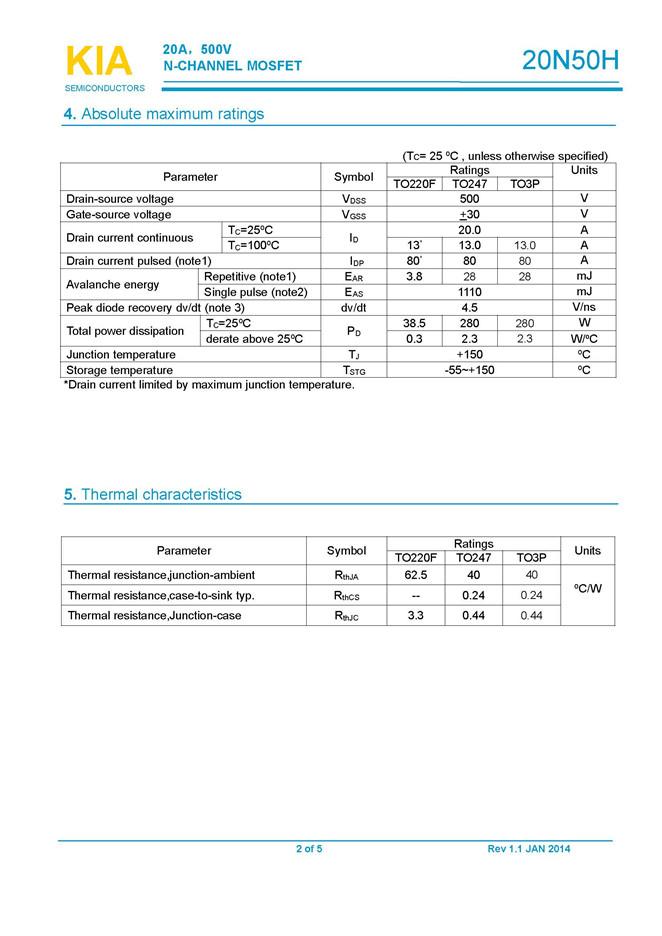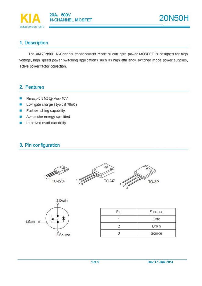 參數(shù): ID(A): 20    BVDSS(V): 500    RDS(ON): 0.26    Qg(nC): 70    Package: TO-220F、TO-3P、TO-247